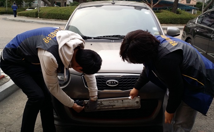 ºÎõ½Ã ¡¼ö°ú ü³³Æ¯º°Â¡¼öÆÀ Á÷¿øµéÀÌ ÀÚµ¿Â÷ ¹øÈ£ÆÇÀ» ¿µÄ¡Çϰí ÀÖ´Ù.