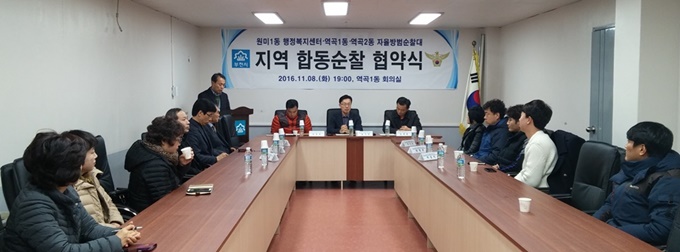À̳¯ Çù¾à½Ä¿¡¼´Â ¿ª°î1¤ý2µ¿ ÀÚÀ²¹æ¹ü¼øÂû´ë¿ø 20¿© ¸íÀÌ Âü¼®ÇØ Áö¿ª Á¤º¸¸¦ °øÀ¯ÇÏ°í ¿ª°îÁö¿ª ¾ß°£¹æ¹ü Ãë¾à±¸°£À» ¿ù 1ȸ ÀÌ»ó ÇÕµ¿ ¼øÂûÇϱâ·Î Çß´Ù.