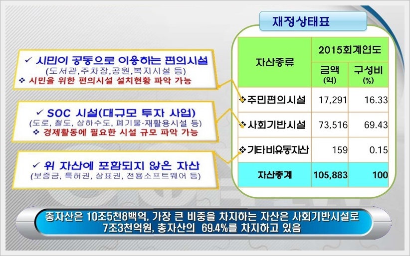 ¶Ç ºÎõ½ÃÀÇ ÃÑ ÀÚ»êÀº 10Á¶5õ800¾ï¿øÀ¸·Î °¡Àå Å« ºñÁßÀ» Â÷ÁöÇÏ´Â ÀÚ»êÀº »çȸ±â¹Ý½Ã¼³·Î 7Á¶3õ¾ï¿øÀ¸·Î ÃÑÀÚ»êÀÇ 69.4%¸¦ Â÷ÁöÇß´Ù.