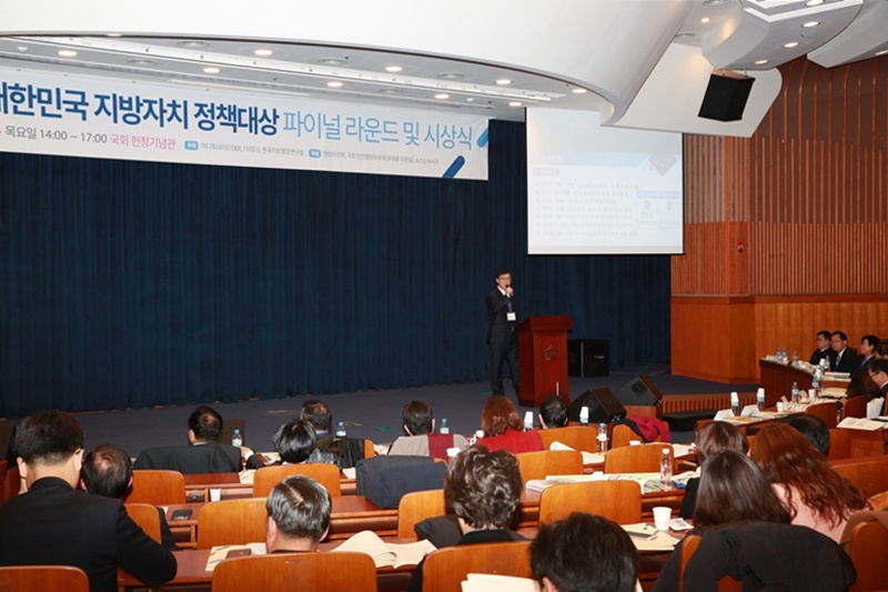 Çѱ¹Áö¹æÇàÁ¤¿¬±¸¿øÀÌ ¿¹ºñ½É»ç¸¦ ÅëÇØ ±¤¿ª¤ý½Ã¤ý±º¤ý±¸ µî 4°³ ±×·ìº°·Î °¢°¢ 9°³ ÃÑ 36°³ÀÇ Á¤Ã¥À» ¼±Á¤ÇÑ ÈÄ ½É»çÀ§¿øÈ¸ÀÇ º»½É»ç¸¦ °ÅÃÄ 12°÷ÀÌ º»¼±¿¡ ÁøÃâÇßÀ¸¸ç, ºÎõ½Ã´Â À̳¯ ¿ÀÈÄ 2½ÃºÎÅÍ ±¹È¸ ÇåÁ¤±â³ä°ü¿¡¼­ ¿­¸° ¡®Á¦1ȸ ´ëÇѹα¹ Áö¹æÀÚÄ¡ Á¤Ã¥´ë»ó ÆÄÀ̳Π¶ó¿îµå ¹× ½Ã»ó½Ä¡¯¿¡¼­ ÇÁ·¹Á¨Å×ÀÌ¼Ç ¹æ½ÄÀÇ ÃÖÁ¾ ½É»ç¸¦ ÅëÇØ ¿µ¿¹ÀÇ ´ë»óÀ» ¼ö»óÇß´Ù.