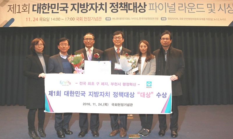 ÀÌó·³ ÀϹݱ¸¸¦ ÆóÁöÇÑ ºÎõ½ÃÀÇ ÇàÁ¤Çõ½ÅÀº ¡ã2016 ÀÚ¶û½º·± ´ëÇѱ¹¹Î ´ë»ó ¡ãÁ¦6ȸ ´ëÇѹα¹ Áö¹æÀÚÄ¡´Üü »ý»ê¼º´ë»ó ¡ã°æÀÎ È÷Æ®»óǰ ´ë»ó ¼ö»ó¿¡ ÀÌ¾î ¡ãÁ¦1ȸ ´ëÇѹα¹ Áö¹æÀÚÄ¡ Á¤Ã¥´ë»ó ´ë»óÀ» ¼ö»óÇß´Ù.