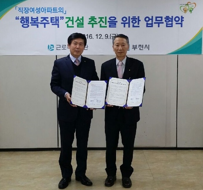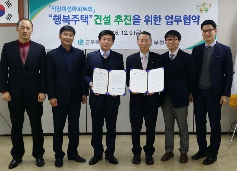 ÀÌ¿µ¸¸ ºÎõ½Ã ÁÖÅñ¹Àå(¿ÞÂÊ)°ú ¿ì±â¿µ ±Ù·Îº¹Áö°ø´Ü º¹Áö»ç¾÷±¹Àå(¿À¸¥ÂÊ)ÀÌ 9ÀÏ µµ´çµ¿ Á÷Àå¿©¼º¾ÆÆÄÆ®¿¡ 130¼¼´ë°¡ µé¾î¼­´Â ¡®º¹»ç°ñ ZERO ÁÖÅá¯À» °Ç¸³Çϱâ À§ÇÑ Çù¾àÀ» ü°áÇÏ°í ±â³äÃÔ¿µÀ» Çϰí ÀÖ´Ù.