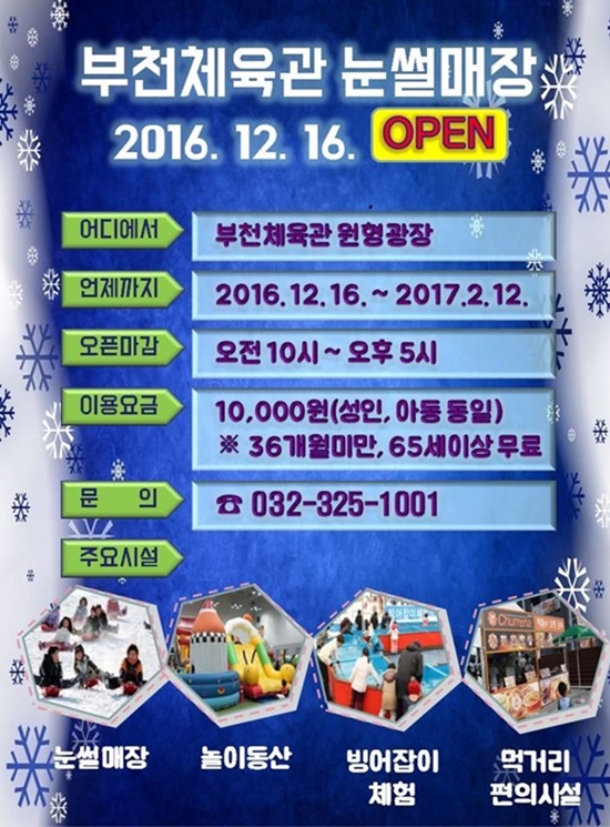ºÎõ½Ã ½Ã¼³°ü¸®°ø´Ü(ÀÌ»çÀå ÀÓ¸íÈ£)Àº ¿À´Â 16ÀÏ ºÎõüÀ°°ü ¿øÇü±¤Àå¿¡ ¡®´«½ä¸ÅÀ塯À» °³Àå, ³»³â 2¿ù12ÀϱîÁö ¿î¿µÇÑ´Ù.