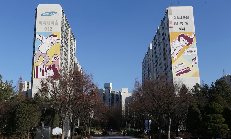 ºÎõ½Ã Áß¾Ó°ø¿ø ÁÖº¯ ¹Ì¸®³»¸¶À»¡¤¹«Áö°³¸¶À» ¾ÆÆÄÆ® ¿Üº®¿¡ µîÀåÇÑ ¡®¸¸È­ º®È­¡¯.