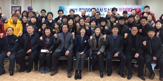 Áö³­ 14ÀÏ ¿­¸° ¡®ÁÖ¹ÎÂü¿©Çü ¼Ò»ç µµ½ÃÀç»ý ¾ÆÄ«µ¥¹Ì¡¯¿¡ Âü¼®ÇÑ Áö¿ªÁÖ¹Î, °ü°è°ø¹«¿ø, Àü¹®°¡µéÀÌ ±â³ä»çÁøÀ» Âï°í ÀÖ´Ù.