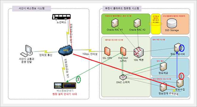¨çÁ¤º¸¼öÁý(³ë¼±¹ö½º¿¡ ÀåÂøµÈ ¼öÁý´Ü¸»½Ã½ºÅÛÀ» ÅëÇØ ¼öÁýµÈ Á¤·ùÀ庰 µµÂø ¹× Ãâ¹ß Á¤º¸°¡ ½Ç½Ã°£À¸·Î ºÎõ½Ã ±³ÅëÁ¤º¸¼¾ÅÍ ³» ¼öÁý¼­¹ö¿¡ ÀúÀå), ¨èÁ¤º¸°¡°ø(¼öÁý¼­¹ö ÀÌ·Â µ¥ÀÌÅ͸¦ Á¤º¸°¡°ø¼­¹ö¿¡¼­ °¡°ø), ¨éÁ¤º¸Á¦°ø(°¡°øµÈ Á¤º¸¸¦ Á¤º¸Á¦°ø¼­¹ö¿¡¼­ ¼­»ê½Ã ¹ö½ºÁ¤·ùÀå¿¡ ¼³Ä¡µÈ ¹ö½ºÁ¤º¸¾È³»±â¿¡ Á¦°ø).