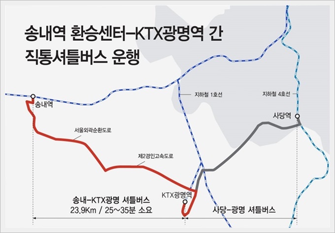 ¿À´Â 7¿ùºÎÅÍ ¼Û³»¿ª ȯ½Â¼¾ÅÍ¿¡¼­ KTX(°í¼Óöµµ) ±¤¸í¿ªÀ» 30ºÐ¸¸¿¡ ¿¬°áÇÏ´Â ¡®Á÷Åë ¼ÅÆ²¹ö½º¡¯°¡ ¿îÇàµÅ ºÎõ¿¡¼­ KTX ÀÌ¿ëÀÌ ÇÑ°á ¼ö¿ùÇØÁø´Ù.