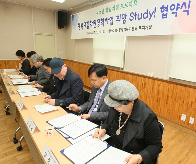 Áß4µ¿ ±Ç¿ª 5°³ µ¿º¹ÁöÇùÀÇü, ºÎõ½Ã Çпø¿¬ÇÕȸ, °æ±â»çȸº¹Áö°øµ¿¸ð±Ýȸ µî 7°³ ±â°ü¤ý´Üü°¡ Áß4µ¿ ±Ç¿ª ³» û¼Ò³âµéÀÌ ¸¶À½ ³õ°í ²Þ°ú ¹Ì·¡¸¦ Ű¿ö°¡´Â ¸¶À»À» ¸¸µé¾îº¸ÀÚ´Â ÃëÁö·Î Áö³ 20ÀÏ ¡®Çູ ´õÇÔ ÇпøÀåÇлç¾÷ Èñ¸Á Study!¡¯ Çù¾àÀ» ü°áÇß´Ù.
