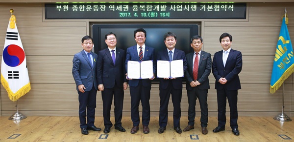±è¸¸¼ö ºÎõ½ÃÀå(¿ÞÂÊ)°ú ±è¼öÁ¾ Çѱ¹ÅäÁöÁÖÅðø»ç(LH) ÀÎõÁö¿ªº»ºÎÀå(¿À¸¥ÂÊ)ÀÌ 10ÀÏ ¿ÀÈÄ 4½Ã ½Ãû ¸¸³²½Ç¿¡¼­ ¡®ºÎõÁ¾ÇտÀå ¿ª¼¼±Ç À¶º¹ÇÕ°³¹ß »ç¾÷ ½ÃÇà ±âº»Çù¾à¡¯À» ü°áÇÏ°í ±â³äÃÔ¿µÀ» Çϰí ÀÖ´Ù.