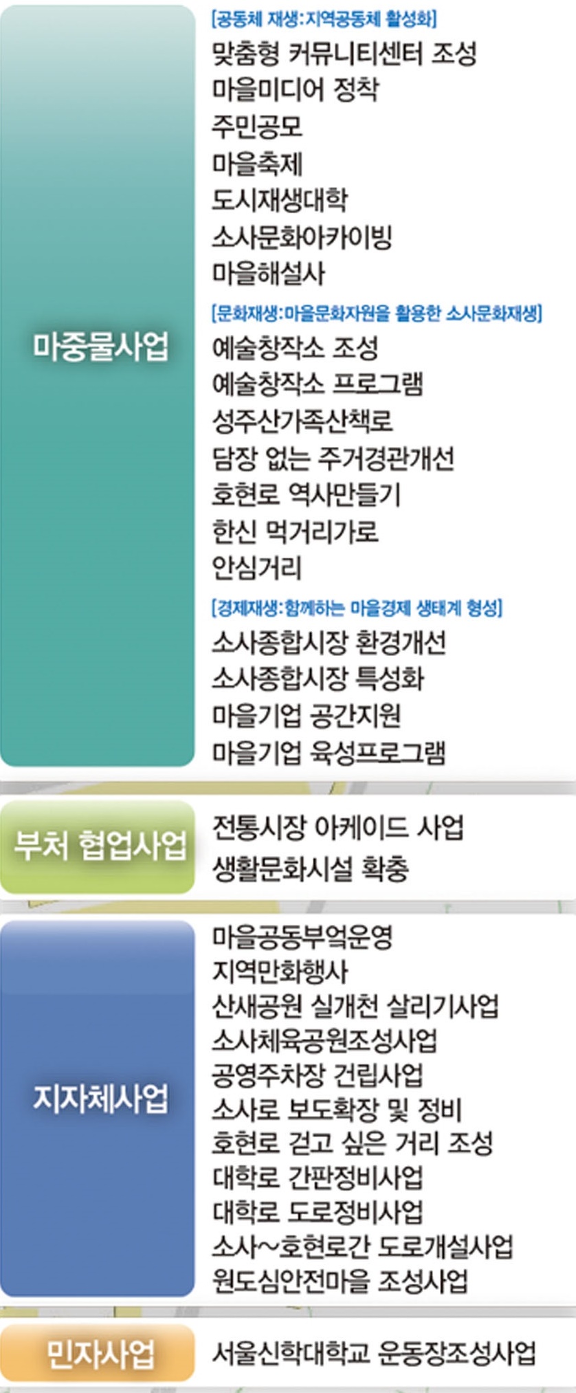 ¼Ò»ç ±Ù¸°Àç»ýÇü µµ½ÃÀç»ý»ç¾÷Àº ¡®¼ºÁÖ»êÀ» ǰÀº Ȱ±âÂù ¼Ò»ç¸¶À»¡¯À̶ó´Â ºñÀü ¾Æ·¡ Áö¿ª°øµ¿Ã¼ Ȱ¼ºÈ, ¸¶À» ¹®ÈÀÚ¿øÀ» Ȱ¿ëÇÑ ¼Ò»ç ¹®ÈÀç»ý, ÇÔ²²ÇÏ´Â ¸¶À» °æÁ¦ »ýŰè Çü¼ºÀ̶ó´Â 3°³ÀÇ ¸ñÇ¥·Î 18°³ ¼¼ºÎ»ç¾÷ÀÌ ÃßÁøµÈ´Ù.