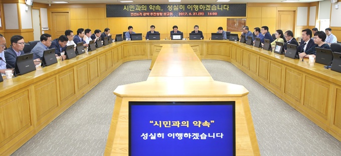 ±è¸¸¼ö ºÎõ½ÃÀåÀº 21ÀÏ ¿ÀÈÄ ¿­¸° ¡®¹Î¼±6±â 100´ë °ø¾à ÃßÁø»óȲ º¸°íȸ¡¯¿¡¼­ ½Ã¹Î°úÀÇ ¾à¼ÓÀÎ °ø¾à»ç¾÷ ÃßÁø¿¡ ÃÖ¼±À» ´ÙÇÒ °ÍÀ» ´çºÎÇß´Ù.