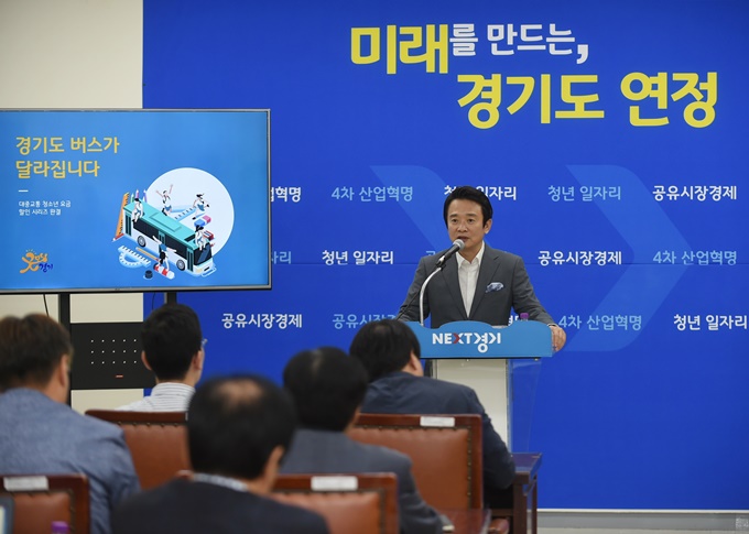 ³²°æÇÊ °æ±âµµÁö»ç°¡ 26ÀÏ ¿ÀÀü °æ±âµµÃ» ºÏºÎû»ç Á¦2ȸÀǽǿ¡¼ ºê¸®ÇÎÀ» °®°í û¼Ò³â ¸¶À»¹ö½º ¿ä±Ý ÀÎÇÏ, ¹ö½º Áذø¿µÁ¦ µî °æ±âµµ ¹ö½ºÁ¤Ã¥¿¡ ´ëÇØ ¼³¸íÇϰí ÀÖ´Ù. 2017.7.26 »çÁø= °æ±âµµ Á¦°ø
