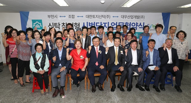 »çÁø ¿ÞÂʺÎÅÍ ÀÌ¿µÈñ »ïÇù¿¬¸³ Á¶ÇÕÀå, ±è¸¸¼ö ºÎõ½ÃÀå, ¹Ú¼ºÇ¥ ´ëÇÑÅäÁö½ÅŹ »çÀå, ÀÌ»ó·Ï ´ë¿ì»ê¾÷°³¹ß °Ç¼³º»ºÎÀåÀÌ 24ÀÏ Çù¾à ü°áÈÄ ±â³äÃÔ¿µÀ» Çϰí ÀÖ´Ù.