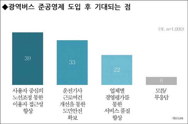 ¹ö½º Áذø¿µÁ¦°¡ ÃßÁøµÉ °æ¿ì ±â´ëµÇ´Â Á¡À¸·Î´Â 39%°¡ ¡®»ç¿ëÀÚ Áß½ÉÀÇ ³ë¼± Á¶Á¤À» ÅëÇÑ ÀÌ¿ëÀÚ Á¢±Ù¼º Çâ»ó¡¯À» ²Å¾Ò°í, 33%°¡ ¡®¿îÀü±â»ç ±Ù·Î¿©°Ç °³¼±À» ÅëÇÑ µµ¹Î ¾ÈÀü È®º¸¡¯¸¦ ²Å¾Ò´Ù.