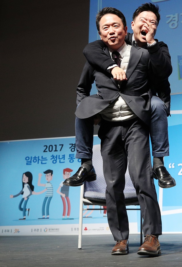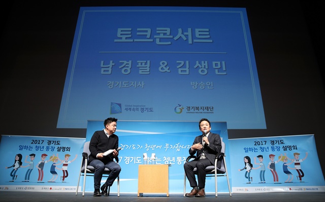 ³²°æÇÊ °æ±âµµÁö»ç¿Í ¹æ¼ÛÀÎ ±è»ý¹Î ¾¾°¡ 3ÀÏ ¿ÀÈÄ ¾È»ê ¹®È­¿¹¼úÀÇÀü´ç¿¡¼­ ¿­¸° ¡®2017 °æ±âµµ ÀÏÇϴ û³âÅëÀå ¼³¸íȸ¡¯¿¡¼­ ÅäÅ©Äܼ­Æ®¸¦ Çϰí ÀÖ´Ù.