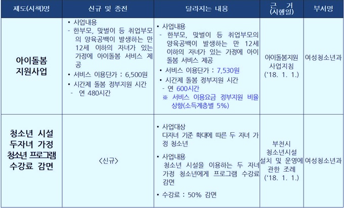 ´ÙÀÚ³à ±âÁØ È®´ë¿¡ µû¶ó µÎ ÀÚ³à °¡Á¤ û¼Ò³â¿¡°Ô û¼Ò³â½Ã¼³ ¼ö°­·á 50% °¨¸é ÇýÅÃÀ» Á¦°øÇÑ´Ù.