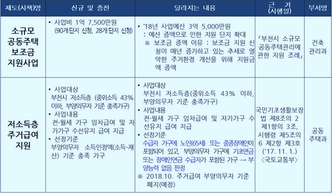 ºÎõ½Ã ¼Ò±Ô¸ð °øµ¿ÁÖÅà º¸Á¶±Ý Áö¿ø»ç¾÷ ¿¹»êÀÌ ¿ÃÇØ 1¾ï 7õ500¸¸¿ø¿¡¼­ ³»³â 3¾ï 5õ¸¸¿øÀ¸·Î Áõ¾×µÅ º¸´Ù ¸¹Àº ´ÜÁö°¡ ÁÖ°Åȯ°æ°³¼± Áö¿øÀ» ¹ÞÀ» ¼ö ÀÖ°Ô µÈ´Ù.