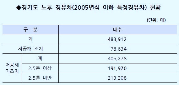 ÇÑÆí, °æ±âµµ¿¡´Â ³ëÈÄ °æÀ¯Â÷°¡ 48¸¸´ë°¡ ¿îÇàµÇ°í ÀÖ°í, ÀÌ °¡¿îµ¥ 41¸¸´ë´Â ¸Å¿¬ Àú°¨ÀåÄ¡ ºÎÂø µî Àú°øÇØ Á¶Ä¡°¡ µÇÁö ¾ÊÀº ä ¿îÇàµÇ°í ÀÖ´Ù.