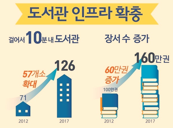 ¡ãµµ¼°üÀÌ ¸¹Àº µµ½Ã= ´©±¸³ª »ýȰ ¼Ó¿¡¼ ½±°Ô Ã¥À» Á¢Çϰí ÀÐÀ» ¼ö ÀÖµµ·Ï µµ¼°ü °Ç¸³¿¡ Èû¾´ °á°ú, 2012³â¿¡ 71°³¼Ò¿´´ø µµ¼°üÀº 126°³¼Ò·Î ´Ã¾î³µ°í Àå¼ ¼öµµ 100¸¸±Ç¿¡¼ 160¸¸±ÇÀ¸·Î ´Ã¾î³ª µ¿³×¸¶´Ù °É¾î¼ 10ºÐ °Å¸®¿¡ µµ¼°üÀÌ ÀÖ´Â ¡®ÀÌ¿ôó·³ °¡±î¿î Ä£±ÙÇÑ µ¶¼°ø°£¡¯À» ¸¶·ÃÇß´Ù.