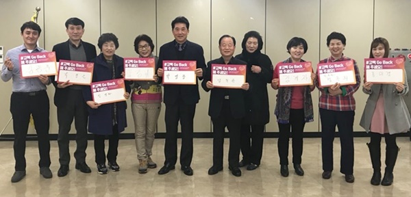 ½É°î2µ¿ º¹ÁöÇùÀÇü À§¿øµéÀÌ º¹Áö»ç°¢ ¹ß±¼ ½Å°íÄ·ÆäÀÎ ¡®#°í¹é(go-back)ÇØÁÖ¼¼¿ä¡¯ µ¿Âü ¼¸íÀ» ÇÏ°í ±â³äÃÔ¿µÀ» Çϰí ÀÖ´Ù.