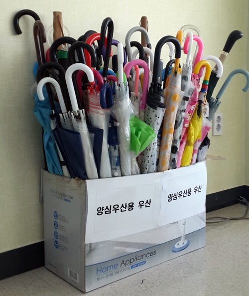 ÇÑÆí, ½Ç½À ±â°£ µ¿¾È ¼ö¸®ÇÑ ¿ì»êµéÀº ¿À´Â 19ÀϺÎÅÍ ¼Û³»¿ª ÀÏÀÚ¸®Ä«Æä¿¡¼­ ¡®¾ç½É ¿ì»ê¡¯À¸·Î Ȱ¿ëµÈ´Ù. ¾ç½É¿ì»êÀº ´©±¸³ª ºñ°¡ ¿À¸é ÀÚÀ¯·Ó°Ô ºô·Á ¾²°í Á¦ÀÚ¸®¿¡ µ¹·Á³õÀ¸¸é µÈ´Ù.
