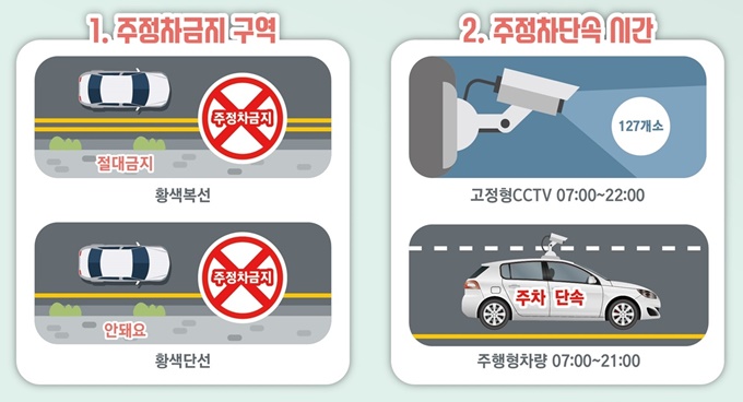 ½Ã ÁÖÂ÷Áöµµ°ú ÁÖÂ÷¼öÀÔ°ü¸®ÆÀ¿¡ µû¸£¸é ½Ã´Â ÁÖ¿äµµ·Îº¯ 480°³ ±¸°£ 268km¸¦ ÁÖÁ¤Â÷ ±ÝÁö±¸¿ªÀ¸·Î ÁöÁ¤Çϰí, 127´ëÀÇ °íÁ¤Çü CCTV¿Í 12´ëÀÇ ÁÖÇàÇü Â÷·®À¸·Î ºÒ¹ý ÁÖ¤ýÁ¤Â÷ ´Ü¼ÓÀ» ½Ç½ÃÇϰí ÀÖ´Ù.