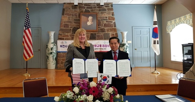 ¼ÛÀ¯¸é ºÎõ½Ã ºÎ½ÃÀå(¿À¸¥ÂÊ)°ú ÀÚ³Ý ¹Îó ÆÞ¹÷ÀÎÅͳ»¼Å³Î(PSBI) ÃÑÀç°¡ 22ÀÏ(ÇöÁö ½Ã°¢) ¹Ì±¹ Ææ½Çº£´Ï¾Æ ÆÛÄ¿½Ã¿¡ ÀÖ´Â ÆÞ¹÷ÀÎÅÍÅͳ»¼Å³Î Àç´Ü »ç¹«½Ç¿¡¼­ ¡®ÆÞ¹÷ ¹®È­±³·ù¸¦ À§ÇÑ ¾çÇØ°¢¼­(MOU)¡¯¸¦ ü°áÇÏ°í ±â³äÃÔ¿µÀ» Çϰí ÀÖ´Ù.