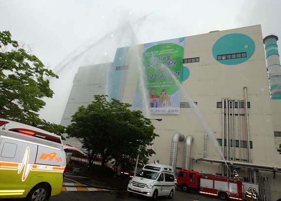 ½Ã 365¾ÈÀü¼¾ÅÍ Àç³­°ü¸®ÆÀ¿¡ µû¸£¸é ¡®2018³â Àç³­´ëÀÀ ¾ÈÀüÇѱ¹ÈƷᯠÀÏȯÀ¸·Î ÁøÇàµÈ À̳¯ ÈÆ·ÃÀº ´ë±Ô¸ð »ç¾÷Àå¿¡¼­ ¹ß»ýÇÒ ¼ö ÀÖ´Â º¹ÇÕÀç³­¿¡ ´ëºñÇÑ ½ÇÀüÈÆ·ÃÀ¸·Î, GSÆÄ¿ö¢ßÀÇ µµ½Ã°¡½º°ø±Þ½Ã¼³¿¡¼­ °¡½º Æø¹ßÀÌ ¹ß»ýÇØ °Ç¹° ºØ±«¿Í À¯ÇØÈ­Çй°Áú(¿°»ê)ÀÌ À¯ÃâµÈ »óȲÀ» °¡Á¤ÇØ ÈÆ·ÃÀ» ½Ç½ÃÇß´Ù.