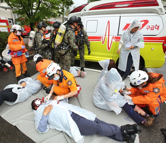 ½Ã¹Î ºñ»ó´ëÇÇ ÈÆ·Ã°ú ´ëÇüÈ­Àç Áø¾Ð, ¿°»ê À¯Ãâ Á¦µ¶ ¹× º¹±¸ÈÆ·ÃÀ» ½Ç½ÃÇßÀ¸¸ç, ºÎõ¼Ò¹æ¼­ ¼Ò¹æÂ÷·®°ú È­»ý¹æ´ë´ë Á¦µ¶Â÷·®, °¡½º¾ÈÀü°ø»ç °¡½º´©Ãâ°ËÁö Â÷·® µî Â÷·®°ú Àåºñ 50¿© ´ë°¡ µ¿¿øµÆ´Ù.