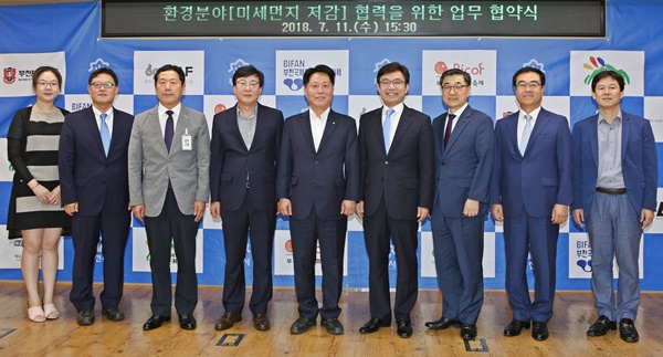 Àå´öõ ºÎõ½ÃÀå(¿ÞÂÊ)°ú ³ªÈñ½Â Çѱ¹Ã¶µµ±â¼ú¿¬±¸¿øÀåÀÌ 11ÀÏ ºÎõ½Ãû¿¡»ç ¹Ì¼¼¸ÕÁö Àú°¨ Çù·ÂÀ» À§ÇÑ ¾÷¹«Çù¾à(MOU)À» ü°áÇÏ°í ±â³äÃÔ¿µÀ» Çϰí ÀÖ´Ù.