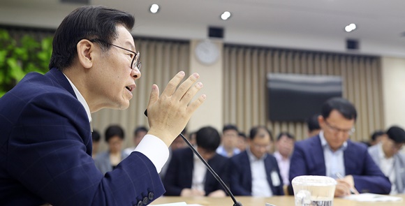 ÀÌÀç¸í °æ±âµµÁö»ç°¡ 16ÀÏ ¿ÀÀü ÃëÀÓ ÈÄ Ã¹ ½Ç±¹Àå ȸÀǸ¦ ÁÖÀçÇϰí ÀÖ´Ù. »çÁø= °æ±âµµ Á¦°ø