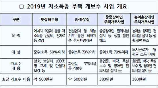 °æ±âµµ´Â ¿ÃÇØ Àú¼ÒµæÃþ°ú ³ó¾îÃÌ, ÁßÁõÀå¾ÖÀÎ µî ÁÖ°ÅÃë¾à °èÃþ 708°¡±¸¸¦ ´ë»óÀ¸·Î ÁÖÅà °³º¸¼ö »ç¾÷À» ÃßÁøÇÑ´Ù°í 5ÀÏ ¹àÇû´Ù.