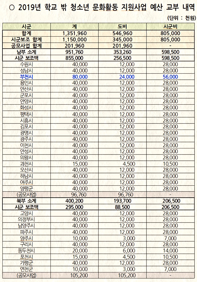 À̹ø¿¡ ¼±Á¤µÈ Çб³ ¹Û û¼Ò³â ¹®ÈȰµ¿ ¿ì¼öÇÁ·Î±×·¥¿¡´Â Çб³ ¹Û û¼Ò³â ¿ì¸®µ¿³× ¹®Ã¼´É(ºÎõ½Ã), Æø·Â¿¹¹æ ¹ÂÁöÄà °ø¿¬(¾È¾ç½Ã), 3DÇÁ¸°ÅÍ·Î ·Îº¿ ¸¸µé±â(±¤ÁÖ½Ã), »·(Fun)ÇÑ ²Þ Á¦ÀÛ¼Ò(±¸¸®½Ã) µî 15°³ »ç¾÷À̸ç, ¿ì¼öÇÁ·Î±×·¥Àº °¢ ½Ã¤ý±ºº° ¹®ÈȰµ¿ Áö¿ø»ç¾÷°ú´Â º°°³·Î ¿î¿µµÈ´Ù.