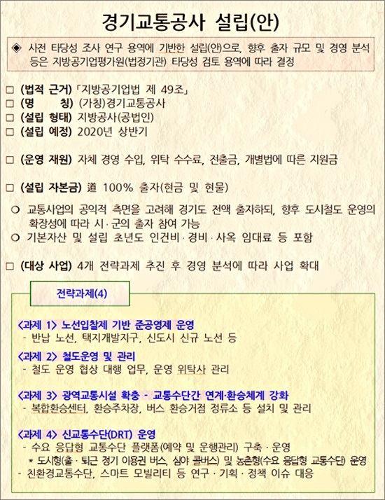 ¡®(°¡Äª)°æ±â±³Åë°ø»ç¡¯´Â µµ³» 31°³ ½Ã¤ý±ºÀÇ ´ëÁß±³Åë ü°è¸¦ ÅëÇÕ¤ý°ü¸®ÇÏ´Â ±³ÅëÁ¤Ã¥ Àü´ã±â°üÀ¸·Î, ¹Î¼±7±â °æ±âµµ°¡ µµ¹Îµé¿¡°Ô º¸´Ù Àü¹®ÀûÀ̰í È¿À²ÀûÀÎ ´ëÁß±³Åë ¼ºñ½º¸¦ Á¦°øÇϱâ À§ÇØ ¼³¸³À» ÃßÁøÇÏ´Â °ÍÀÌ´Ù.