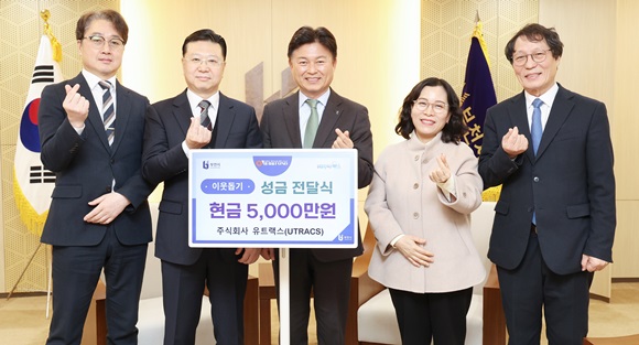 À±Á¾Ã¶ ¢ßÀ¯Æ®·¢½º ´ëÇ¥ÀÌ»ç´Â ¡°Áö¿ª»çȸ·ÎºÎÅÍ ¹ÞÀº Áö¿ø°ú »ç¶ûÀ» ´Ù½Ã Áö¿ª¿¡ µ¹·Áµå¸®´Â °ÍÀÌ ±â¾÷ÀÇ ¿ªÇÒÀ̶ó°í »ý°¢ÇÑ´Ù¡±¸ç ¡°À̹ø ¼º±ÝÀÌ ¾î·Á¿î ÀÌ¿ôµé¿¡°Ô ÀÛÀº À§·Î¿Í Èñ¸ÁÀÌ µÇ±æ ¹Ù¶ó¸ç, ¾ÕÀ¸·Îµµ ºÎõ°ú ÇÔ²² ¼ºÀåÇÏ´Â ±â¾÷ÀÌ µÇµµ·Ï ³ª´®À» Áö¼ÓÇØ ³ª°¡°Ú´Ù¡±°í ¸»Çß´Ù.