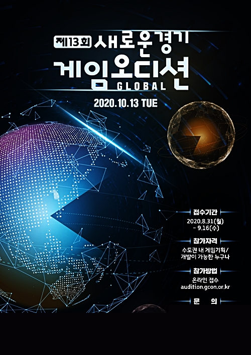 Á¦13ȸ »õ·Î¿î°æ±â °ÔÀÓ¿Àµð¼Ç Âü°¡ÀÚ ¸ðÁý¿¡ °ü·ÃÇÑ ÀÚ¼¼ÇÑ »çÇ×Àº ȨÆäÀÌÁö(audition.gcon.or.kr¤ý¹Ù·Î °¡±â Ŭ¸¯ )¸¦ Âü°íÇϰųª °æ±âÄÜÅÙÃ÷ÁøÈï¿ø °ÔÀÓ¡¤µðÁöÅÐÇõ½ÅÆÀ(¢Ï031-776-4783)À¸·Î ¹®ÀÇÇÏ¸é µÈ´Ù.