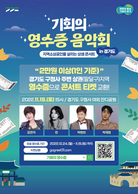 °æ±âµµ´Â ±¤±³ ½Åû»ç ÀÌÀüÀ¸·Î À§ÃàµÈ ¼ö¿ø½Ã ÆÈ´Þ±¸ ¿¾ °æ±âµµÃ»»ç ÁÖº¯ »ó±Ç Ȱ¼ºÈ¸¦ À§ÇØ 11¿ù 19ÀÏ(Åä) ¿ÀÈÄ 3½ÃºÎÅÍ ¿¾ °æ±âµµÃ» ¾ß¿Ü ÀÜµð°ø¿ø¿¡¼ ¡®±âȸÀÇ ¿µ¼öÁõ À½¾Çȸ¡¯¸¦ °³ÃÖÇÑ´Ù.