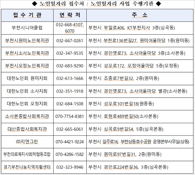 2023³â¿¡´Â ¾çÁúÀÇ ³ëÀÎÀÏÀÚ¸® »ç¾÷ ÃßÁøÀ» À§ÇØ ³ëÀÎÀÏÀÚ¸® ¼öÇà±â°ü 1°÷(»çȸÀûÇùµ¿Á¶ÇÕ °æ±âºÎõ³ª´®Áö¿ªÀÚȰ¼¾ÅÍ)¸¦ Ãß°¡ ¼±Á¤ÇØ ºÎõ½Ã´Ï¾îŬ·´ µî ÃÑ 12°³ÀÇ ¼öÇà±â°ü¿¡¼ ³ëÀÎÀÏÀÚ¸® »ç¾÷À» ¼öÇàÇÒ ¿¹Á¤ÀÌ´Ù.