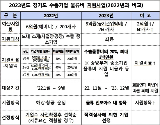 °æ±âµµ´Â Áö³ÇØ È¹°¿¬´ë ÆÄ¾÷¿¡ µû¸¥ ÇÇÇØ Áö¿øÀ» Æ÷ÇÔÇÑ ¡®2023³â Á¦1Â÷ °æ±âµµ ¼öÃâ±â¾÷ ¹°·ùºñ Áö¿ø¡¯ »ç¾÷ ´ë»ó ±â¾÷À» 9ÀϺÎÅÍ 13ÀϱîÁö ¸ðÁýÇÑ´Ù°í 5ÀÏ ¹àÇû´Ù.