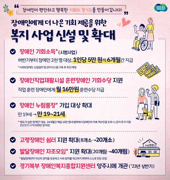 °æ±âµµ´Â Àå¾ÖÀÎÀÌ Æí¾ÈÇϰí ÇູÇÑ ¡®±âȸÀÇ °æ±âµµ¡¯¸¦ ¸¸µé±â À§ÇØ ¿ÃÇØ Àå¾ÖÀÎ ±âȸ¼Òµæ ½Ã¹ü»ç¾÷ µµÀÔ, Àå¾ÖÀÎ ´©¸²ÅëÀå °¡ÀÔ ´ë»óÀÚ È®´ë, ÃÖÁßÁõ¹ß´ÞÀå¾ÖÀÎ 24½Ã°£ µ¹º½ ½ÇÅÂÁ¶»ç µî ¿ÃÇØ ÃßÁøÇÒ ÁÖ¿ä Àå¾ÖÀÎ º¹ÁöÁ¤Ã¥À» 24ÀÏ ¹àÇû´Ù.