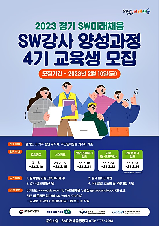 °æ±âµµ´Â ¹Ì·¡ ¼ÒÇÁÆ®¿þ¾î(SW) ÀÎÀç ¾ç¼º ±â¹Ý ¸¶·ÃÀ» À§ÇÑ ¡®¼ÒÇÁÆ®¿þ¾î °»ç ¾ç¼º°úÁ¤(4±â)¡¯¿¡ Âü¿©ÇÒ ±³À°»ý 100¸íÀ» 2¿ù 10ÀϱîÁö ¸ðÁýÇÑ´Ù.