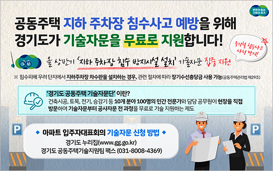 °æ±âµµ´Â °øµ¿ÁÖÅÿ¡¼ ÁöÇÏ ÁÖÂ÷Àå ³» ħ¼ö ¹æÁö½Ã¼³À» ¿øÈ°È÷ ¼³Ä¡ÇÒ ¼ö ÀÖµµ·Ï ¡®°æ±âµµ °øµ¿ÁÖÅà ±â¼úÀÚ¹®´Ü¡¯ÀÌ Àü¹®ÀûÀÎ ±â¼ú Áö¿øÀ» ¹«·á·Î Áö¿øÇÑ´Ù¸ç ½ÅûÀ» µ¶·ÁÇß´Ù.